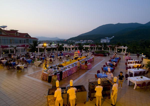 三亞金棕櫚度假酒店座落在亞龍灣最中間的位置,大!频杲ㄖ礃嫵闪恕叭灰惑w”的酒店格局。三亞金棕櫚度假酒店大堂觀海視野開闊,180度海景一覽無余。酒店既有沙灘又有湖泊,讓您既可以在大海戲水又可以在湖泊垂釣,是亞龍灣擁有空中花園、海景、湖景角度均佳的酒店,客房景致無論海景還是湖景都非常賞心悅目,魚和熊掌兼得。