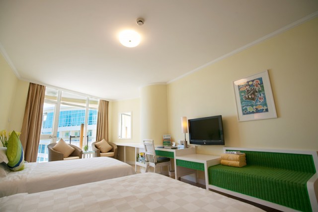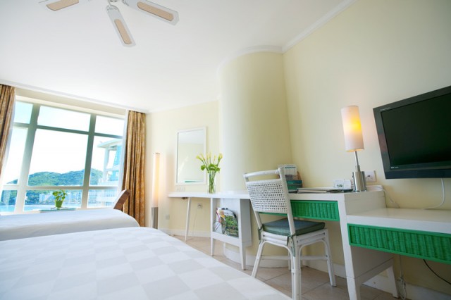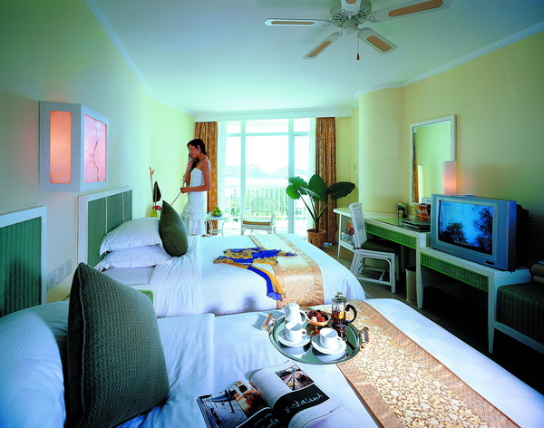 豪華海景房,面積35平方米,樓層2-9層,有陽(yáng)臺(tái),180度海景,大床(2*2米),雙標(biāo)(1.35*2米),90%有浴缸 免費(fèi)寬帶