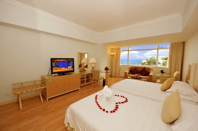 高級(jí)海景雙床房 面積:39平方米 樓層:2-8層 海景:50度 陽臺(tái):無 雙標(biāo):1.2*2米 浴缸:大部分房間有 寬帶:免費(fèi)
