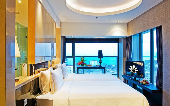 三亞黎客國際酒店座落于三亞市繁華商業(yè)圈,坐擁河西路、文明路和新風(fēng)路,毗鄰享譽(yù)島內(nèi)外的春園海鮮廣場及200畝生態(tài)城市公園,明珠廣場、三亞步行街等知名購物中心以及三亞汽車總站近在咫尺,距三亞鳳凰國際機(jī)場僅30分鐘車程,步行5分鐘即可親臨享有聲譽(yù)的“椰夢長廊”---三亞灣,踩白沙細(xì)水,聽椰風(fēng)海韻,看綠影婆裟,盡享三亞的天藍(lán)海碧。來自中法港臺新加坡的國際設(shè)計(jì)團(tuán)隊(duì),非凡手筆彰顯時(shí)尚溫馨兼具的獨(dú)特風(fēng)格。三亞黎客國際酒店獨(dú)高99米,總27層,擁有各類豪華客房。擁享都市內(nèi)唯一超5000㎡的巴厘島風(fēng)情叢林中庭和獨(dú)具特色的空中泳池。酒店配套措施完善,我是一只魚西餐廳、融廷中餐廳、西雅圖海鮮餐廳、小林吧、庭園酒廊等應(yīng)有盡有,還有具國際水準(zhǔn)的水療館,商務(wù)健身中心、會議室及臺灣名品店。這是一座優(yōu)雅奢華的城,更是一個(gè)精致溫馨的家,為您提供集養(yǎng)生、休閑、商務(wù)、度假為一體的最佳生活體驗(yàn)。